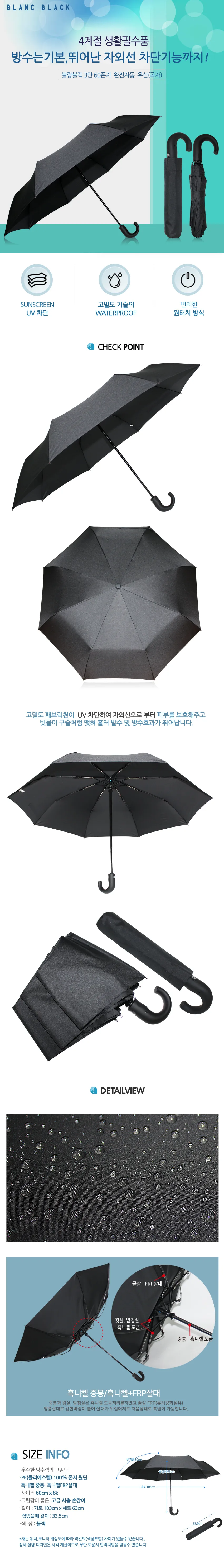 블랑블랙 3단 60폰지 완전자동 우산(곡자)