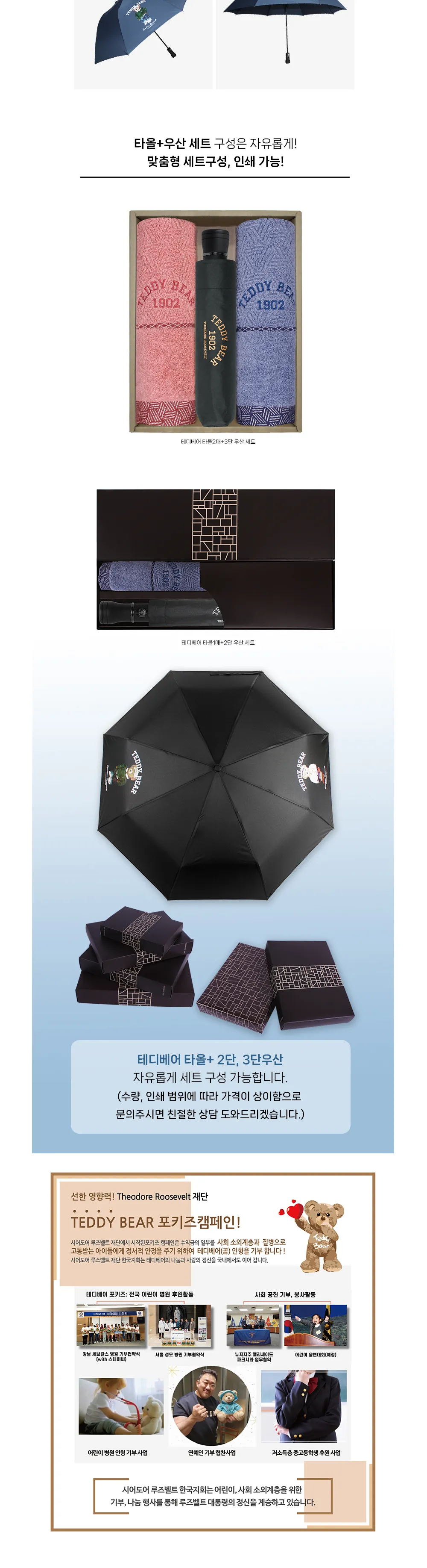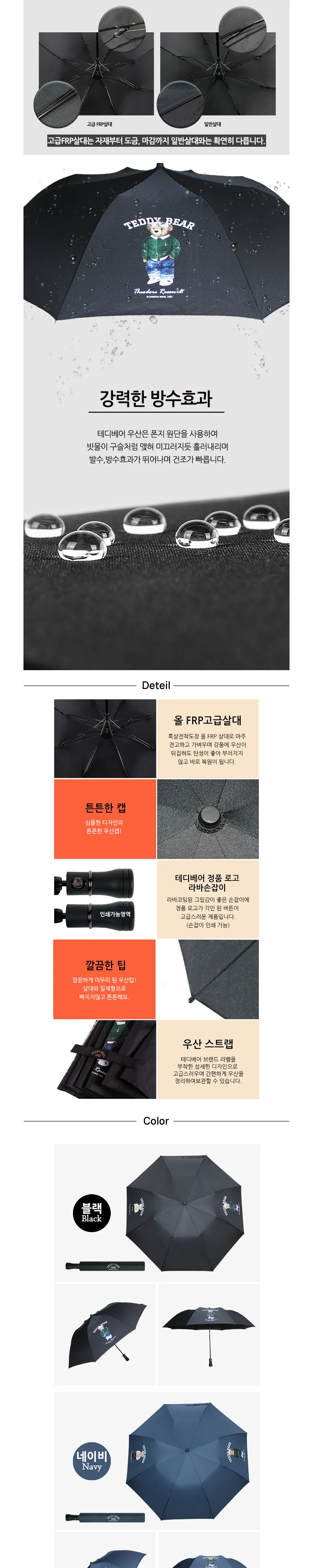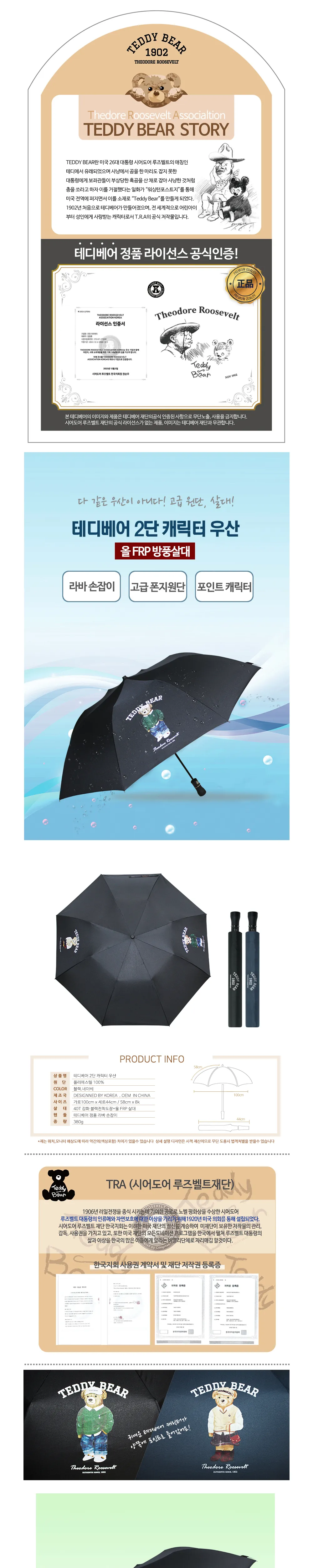 테디베어 프리미엄 2단 방풍 캐릭터 우산 2COLOR